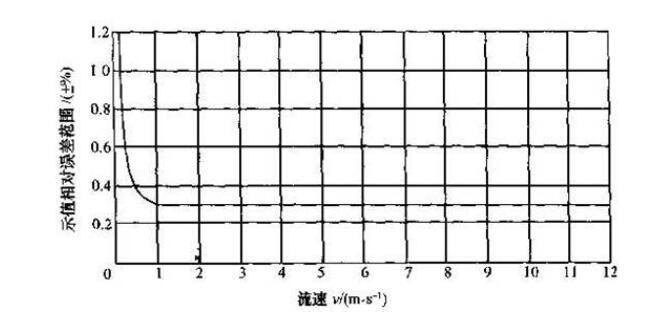 3)在恶劣环境下的高精度 根据线性测量原理,智能电磁流量计有很微小的测量误差(在参考条件下示值相对误差小于0 2%)、高线性度和大量程(在1:100的量程内示值相对误差小于1%)。 图3 3是满管式智能电磁流量计的误差范围。