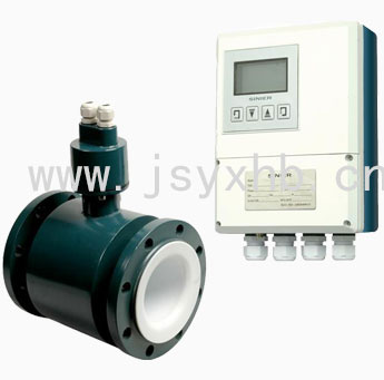 产品特点 •分体式电磁流量计,变送器与传感器通过电缆连接。 •管道内无可动部件,无阻流部件,测量中几乎没有附加压力损失。 •测量结果与流速分布、流体压力、温度、密度、粘度等物理参数无关。 •在现场可根据用户实际需要在线修改量程。 •适用于各种导电液体的流量测量,如自来水、污水、泥浆、各类饮料、化学原 料、粘稠液体和悬浮液。 •采用SMD器件和表面贴装(SMT)技术,电路可靠性高,功耗低。 •采用16位嵌入式微处理器,运算速度快,精度高,可编程频率低频距形波励磁,提高了流量测量的稳定性。 •全数字量处理,抗干扰能力强,测量可靠,精度高,流量测量范围可达30:1。 •超低功耗EMI开关电源,适用电源电压变化范围大,EMC性能好。 •内有三个积算器,可分别对正向累计、反向累计及差值积算,内部设有不掉电 时钟,可记录16次掉电时间。 •使用方便,安装后只需接上电源,不需其他任何操作,即可输出标准信号,便 于非专业人员使用。 •具有RS485、RS232、Hart、Modbus和Profibus等数字通讯信号输出。 •提供传感器五段非线性修正功能。 •具有平均流量自动运算功能,便于仪表的标定。 •阻尼功能:可设定范围0-50S(中间任意整数)。 •断电保护,流量计的运算结果和用户设定的参数在断电后不会消失,EEPROM可 保护设定参数和累计值。 •小信号切除功能。用户可通过显示面板设置下限电压和下限流量,从而切除干 扰性小信号流量。 •密码锁存功能。流量计通电后,若需要设定参数,须输入四位密码才能进行 参数设定,有效防止无关人员改变仪表参数。 •转换器和传感器具有多种防护等级及安装方式,有适用于潜水安装的IP68等级。